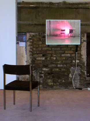 Wide Awake Staring, offsets photographed space against physical object. It reflects Lakmaier's experiences of the blurring between works of art, architecture and banal objects in the gallery space while invigilating exhibitions. Looking again and again at the same objects and beginning to see new structures and relationships between objects in the gallery. This has fed back into her practice and has influenced this piece.