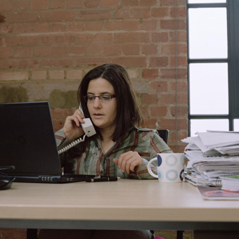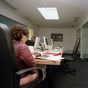For this collaboration between photographer Sabine Gruhn and Noƫmi Lakmaier the two artists brought together their diverse practices to create a series of unsettling, yet humorous images taken in the offices of London based arts organisations.